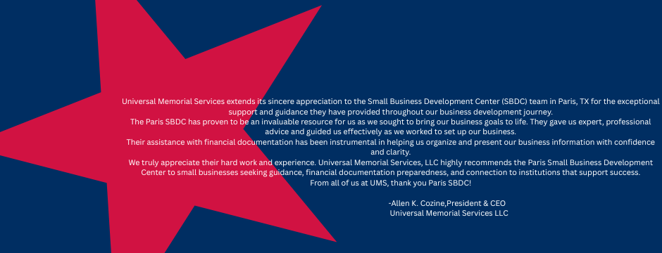 “The SBDC has been instrumental in my growth as a business owner. The guidance, encouragement, and practical tools I received helped me turn uncertainty into clarity and confidence. My advisor didn’t just help me build a business plan-she helped me believe in myself as a capable entrepreneur. I would recommend the SBDC to any entrepreneur who wants real support, honest guidance, and access to resources that truly make a difference. The advising I received helped me move forward with confidence and purpose.”